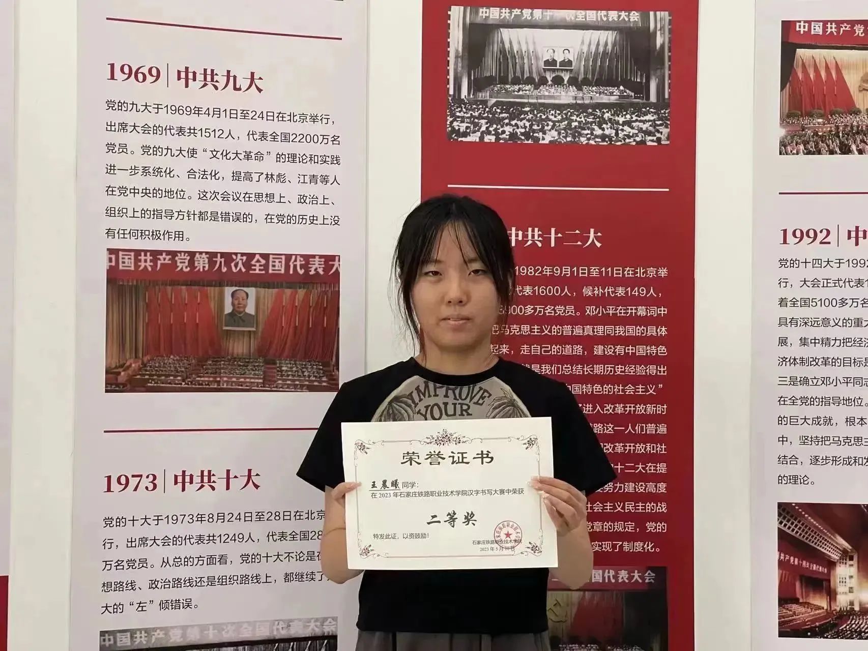 经评比,辅导员刘艺荣获“石家庄铁路职业技术学院一等奖”,学生王佳慧、李烁、李超慧、王晨曦、王鹏荣获“石家庄铁路职业技术学院二等奖”,卢萍荣获“石家庄铁路职业技术学院三等奖”,李彤、刘玉环荣获“石家庄铁路职业技术学院优秀奖”,9月收到比赛官方通知,张霁箫、董思雨、张艳杰、霍昭杰荣获“河北省中华经典诵读写二等奖”。